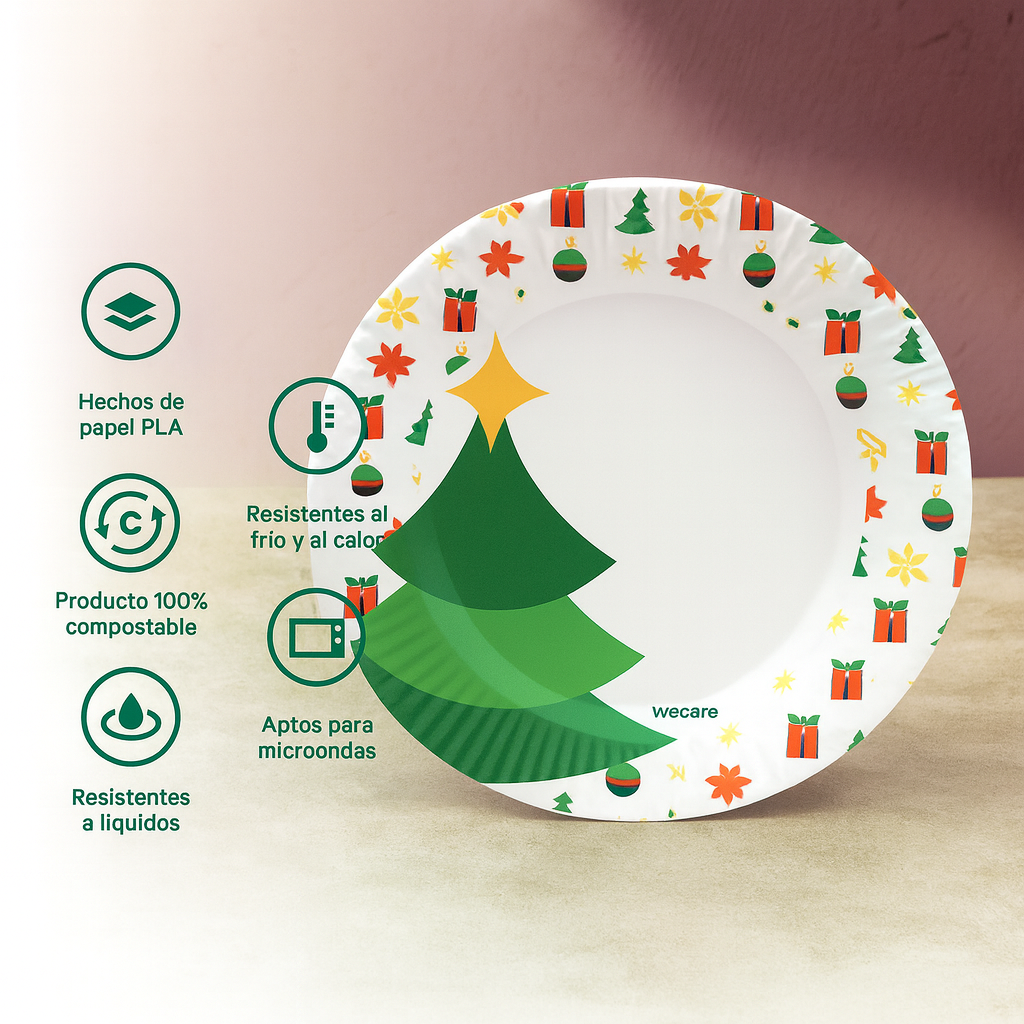 Plato Navideño Pastelero |Bagazo caña | 6" / 15.2 cm | Compostable y biodegradable