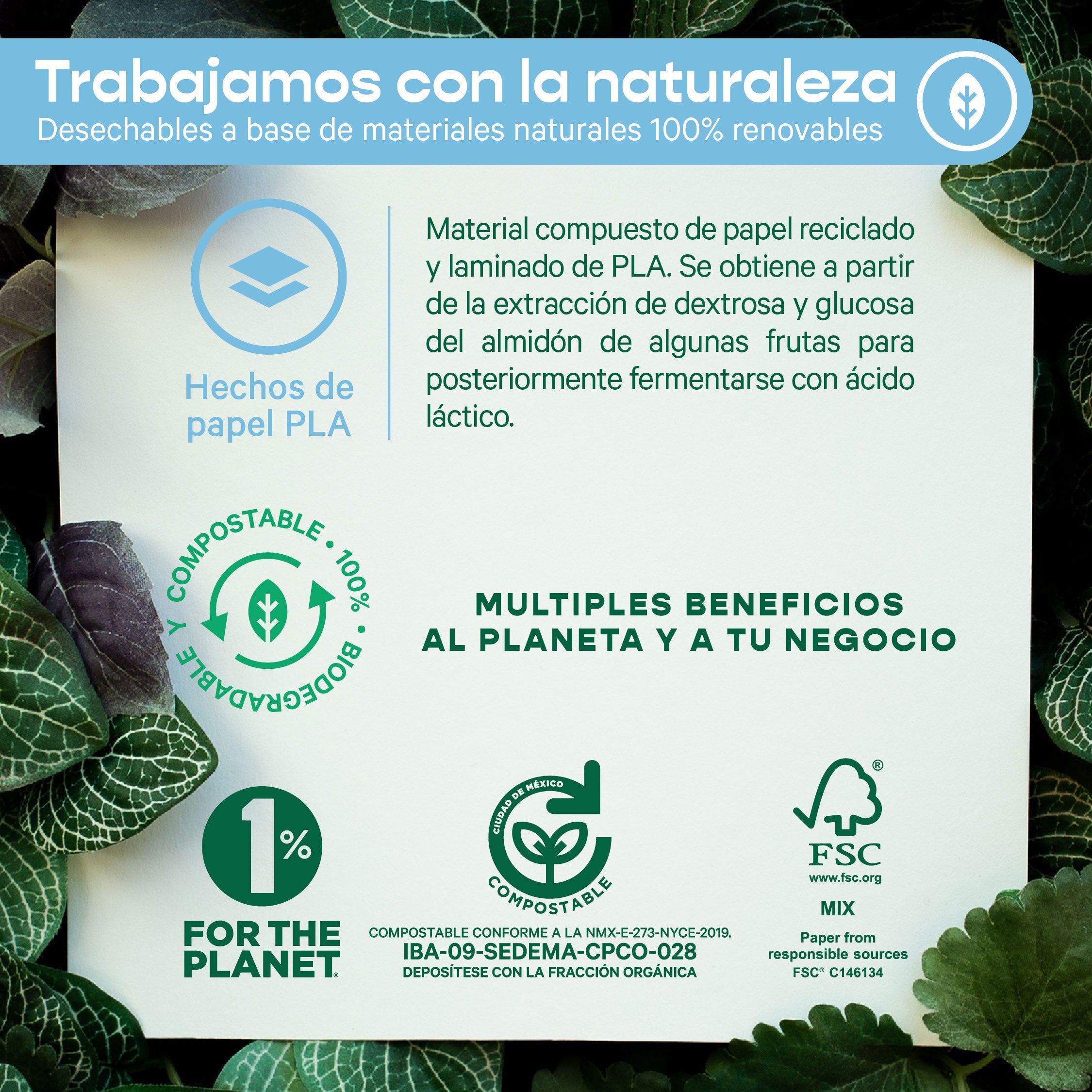 - Fabricado con PAPEL PLA 100% biodegradable y compostable
